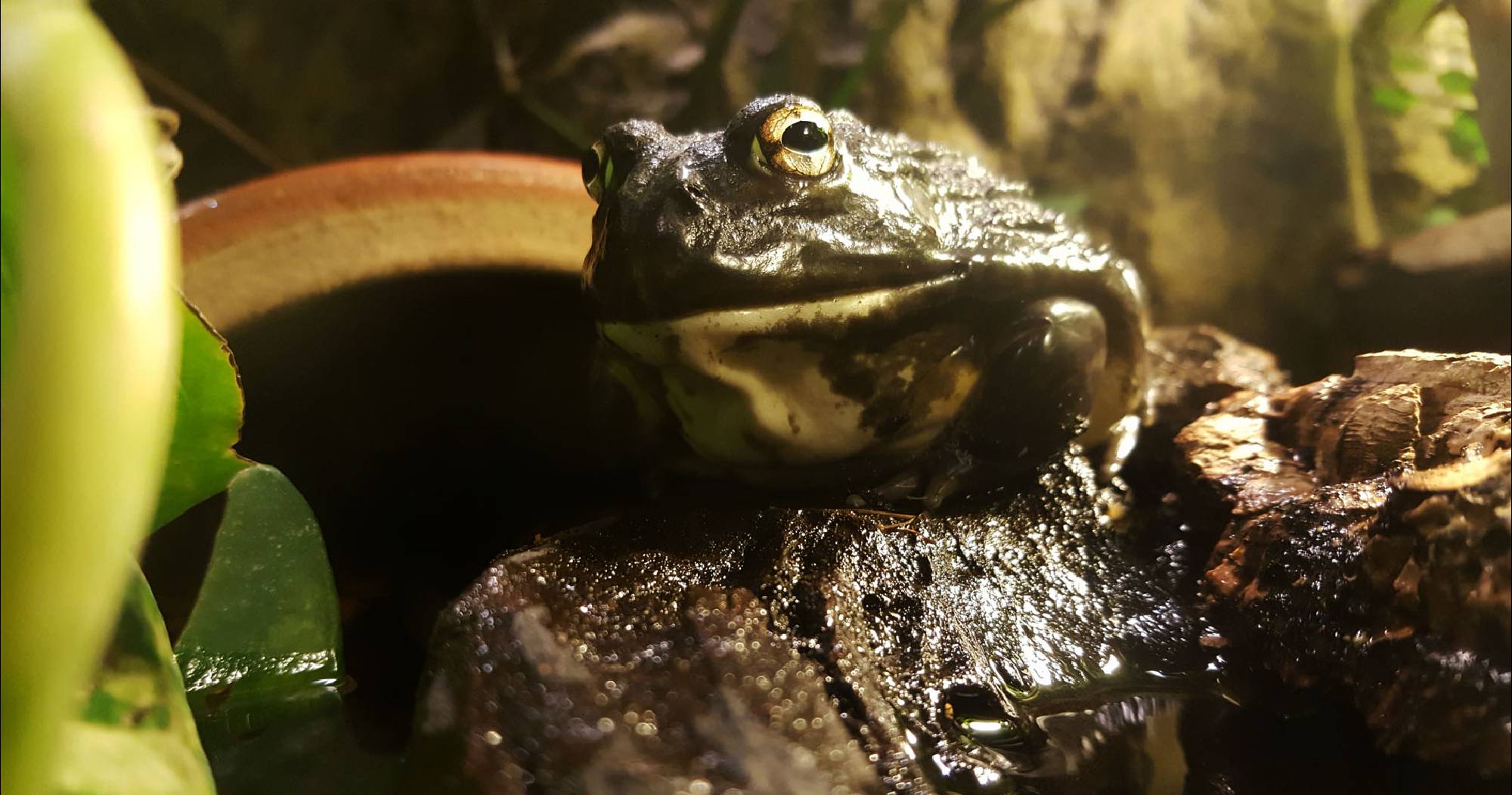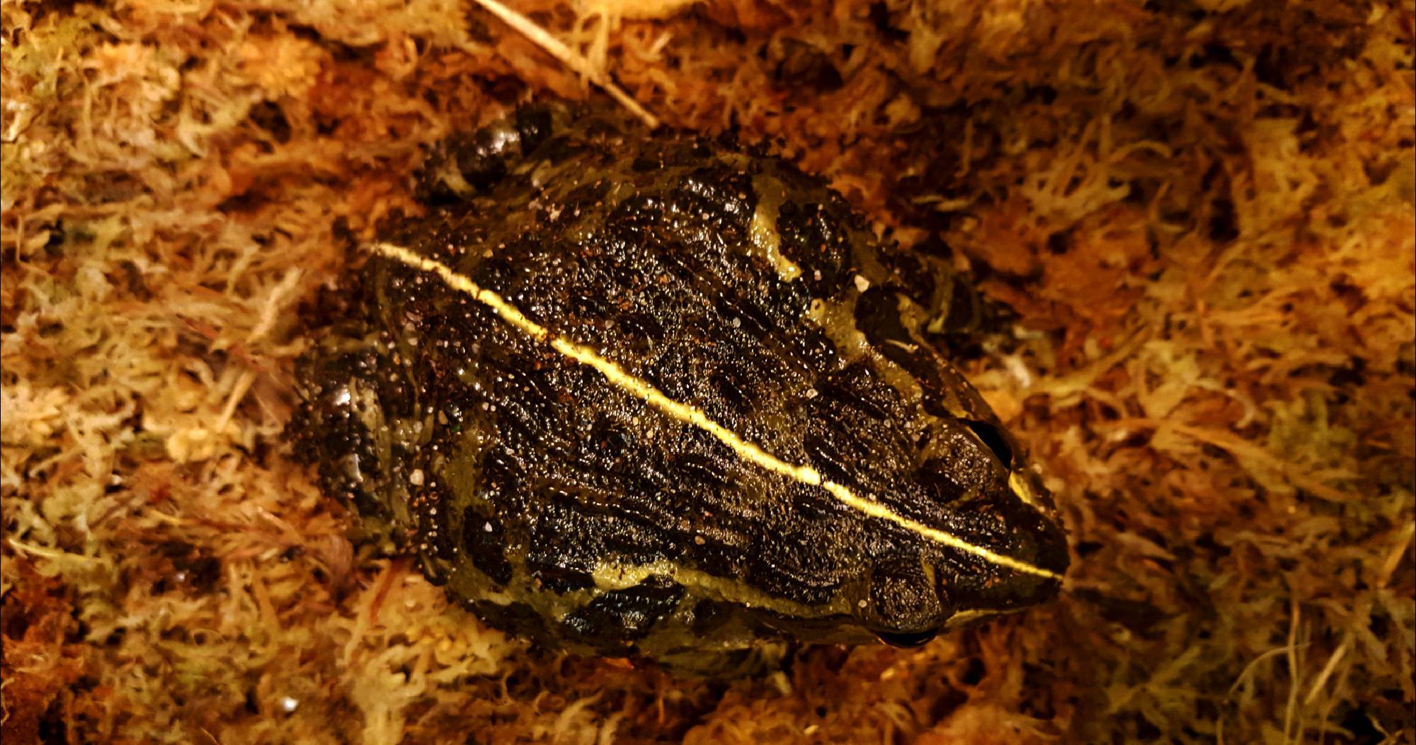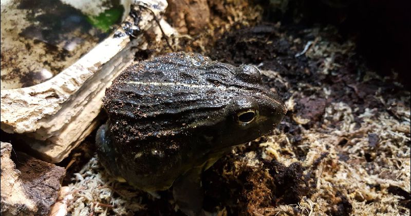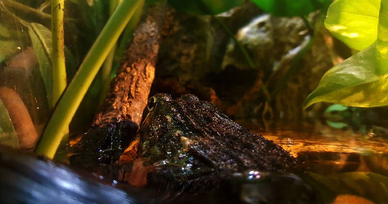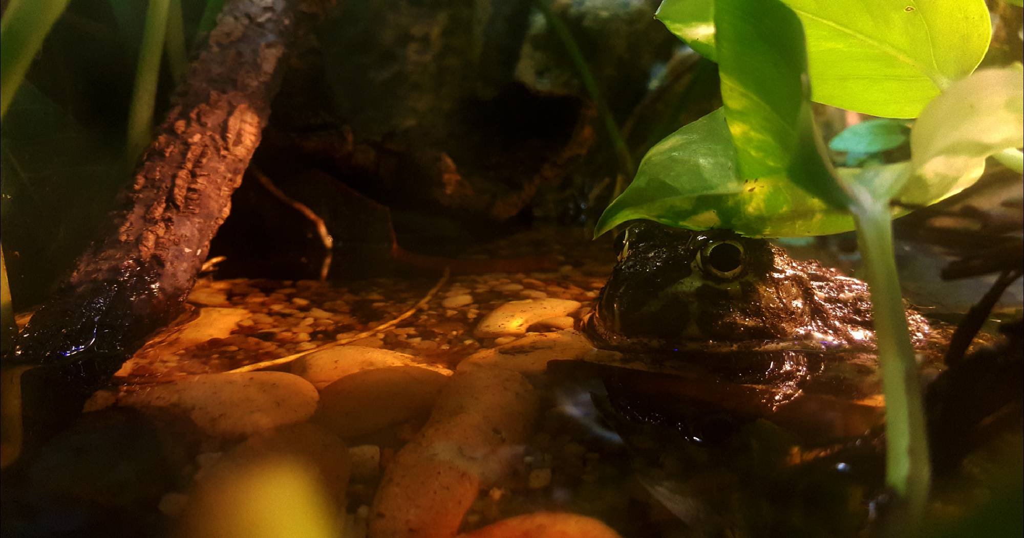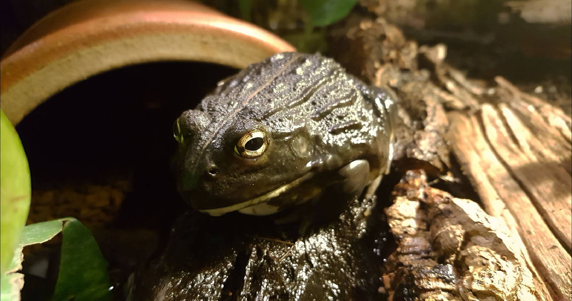 Dieser gefrässige Geselle oder Gesellin, Geschlecht habe ich noch nicht herrausgefunden, hat es mir besonder angetan. Er ist im November 2016 bei mir eingezogen und seitdem, bis auf 2 Ausnahmen, in Trockenruhe. Bei diesen Tieren ist wirklich Vorsicht geboten, da sie nach allem schnappen was sich bewegt, auch wenn es nicht ins Maul passen sollte. Eine Vergesellschaftung mit anderen Fröschen und Kröten ist nicht möglich, da alles als Futter angesehen wird. Gekauft habe ich Ihn/Sie von einer Familie die wohl nicht recht wusste welche Ausmaße dieser Frosch noch annehmen wird.