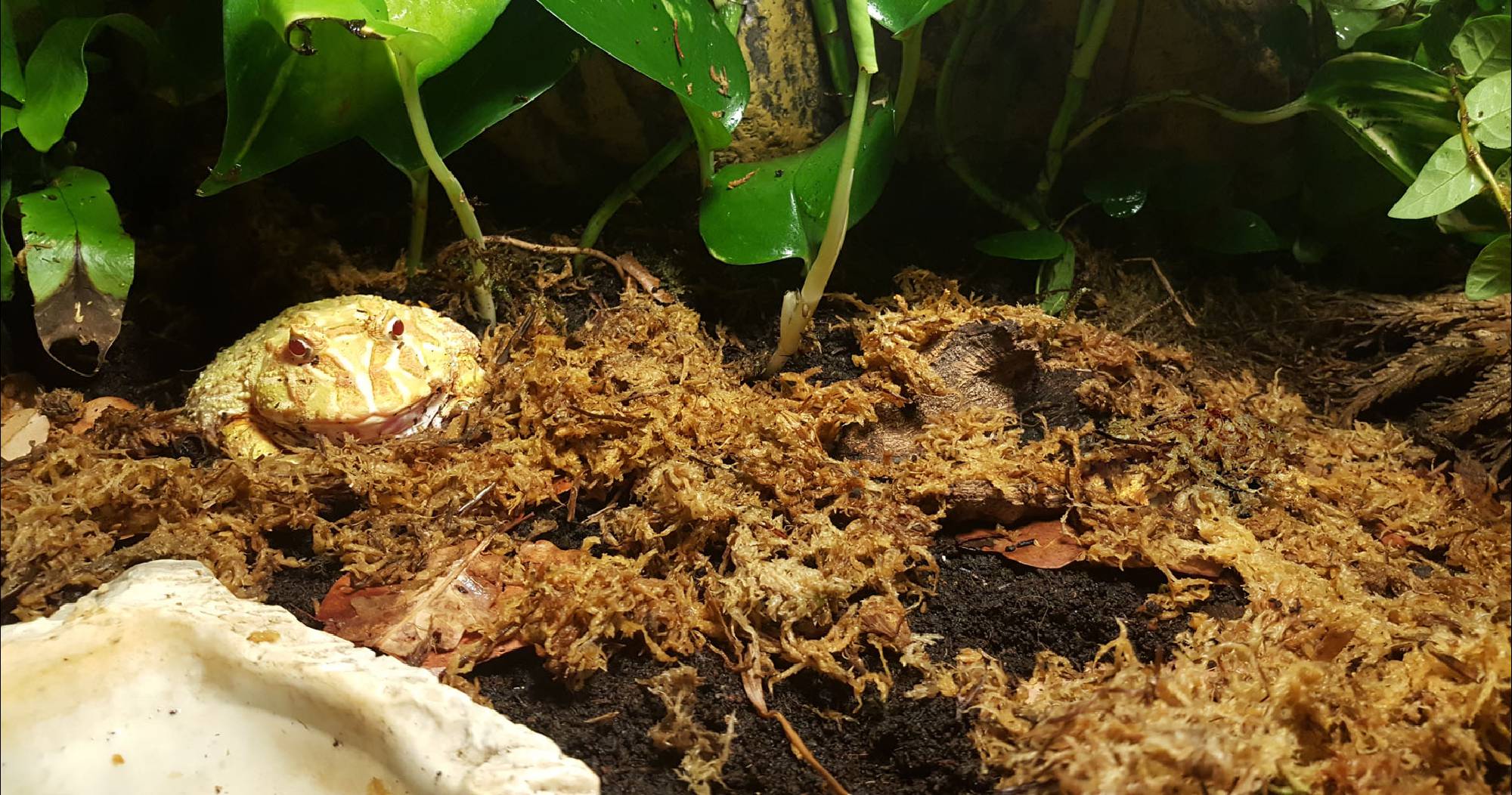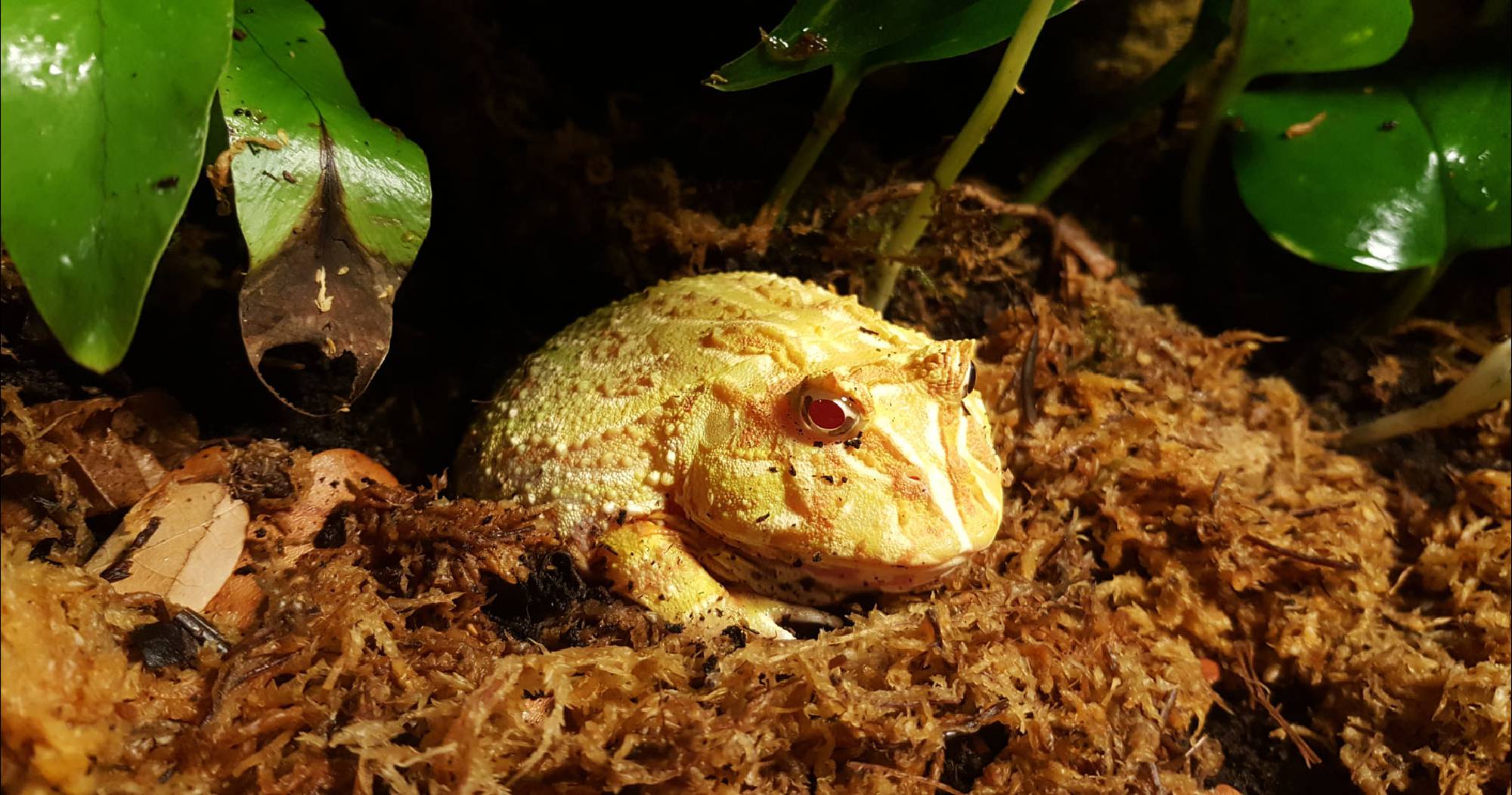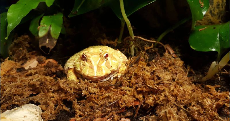 Aussehen: Grundfärbung gelb mit hell roten Flecken, weisse Kehlfärbung